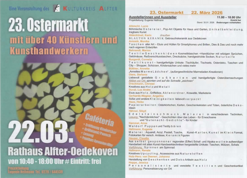 23. Künstler-und Kunsthandwerker Ostermarkt im Rathaus Alfter-Oedekoven